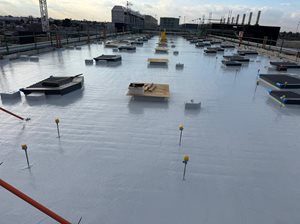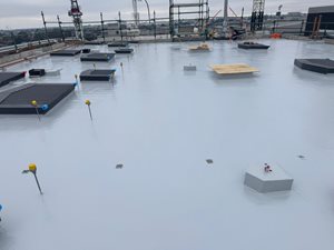 The scope of work involved the application of a multi-layered liquid waterproofing system designed to restore and protect the roof substrate. The specified system was selected for its rapid-curing properties, robust performance, and ability to provide long-term durability.