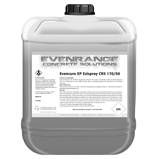 Evencure EP Ezispray is a fine particle, high solids, modified ASS 170 bitumen emulsion.